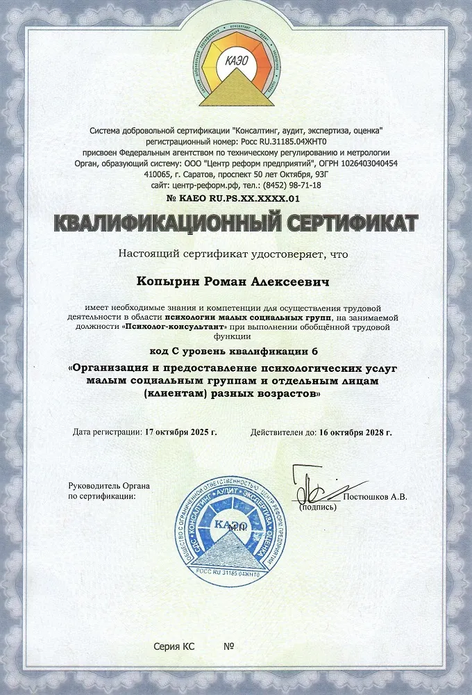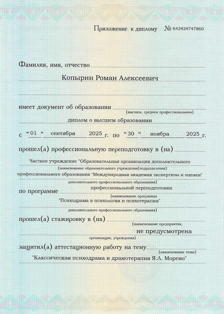 Диплом о профессиональной переподготовке установленного образца и квалификационный сертификат соответствия Профессиональным стандартам.